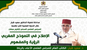 مداخلة فضيلة الدكتورسعيد شبار الكاتب العام خلال الندوة العلمية التي نظمها المجلس العلمي المحلي اإقليم سطات : الإصلاح في النموذج المغربي الرؤية والمفهوم اقرأ المزيد 30 دجنبر، 2025