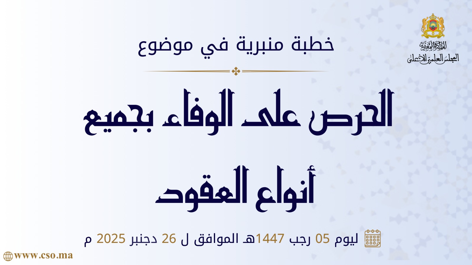 خطبة ليوم 19 رجب 1447هـ  الموافق لـ 9 يناير 2026م