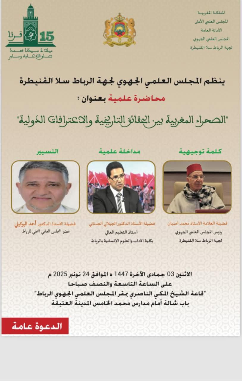 استجابة للرسالة الملكية السامية لمولانا أمير المومنين أيد الله نصره في شأن العناية بالسيرة النبوية العطرة احتفاء بمرور خمسة عشر قرنا على مولد المصطفى المختار صلى الله عليه وسلم ،واحتفالا بالذكرى الخمسين لحدث المسيرة الخضراء المظفرة، والذكرى السبعين لعيد الاستقلال المجيد، وبتنسيق مع المجلس العلمي الجهوي لجهة مراكش آسفي ينظم المجلس العلمي المحلي لآسفي ندوة وطنية بعنوان: