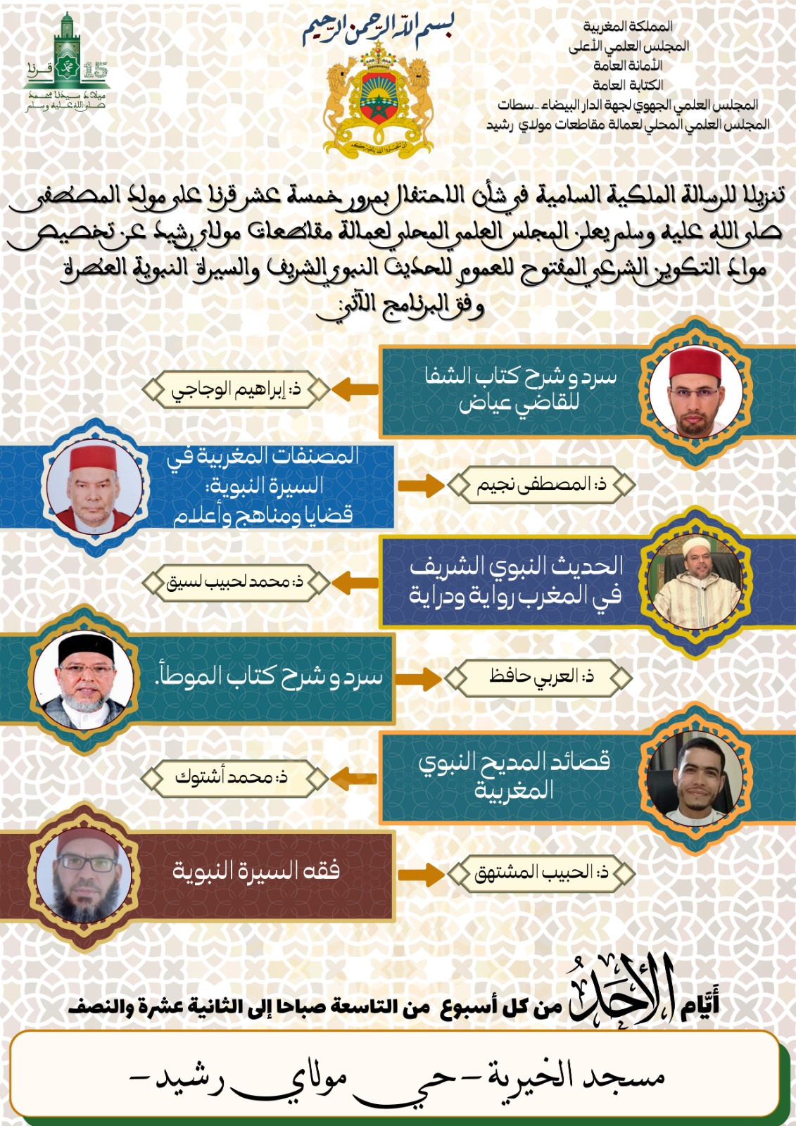 احتفاء بالذكرى الخمسين للمسيرة الخضراء المظفرة والذكرى السبعين لعيد الاستقلال المجيد ينظم المجلس العلمي الجهوي لجهة الداخلة وادي الذهب ندوة علمية جهوية في موضوع: