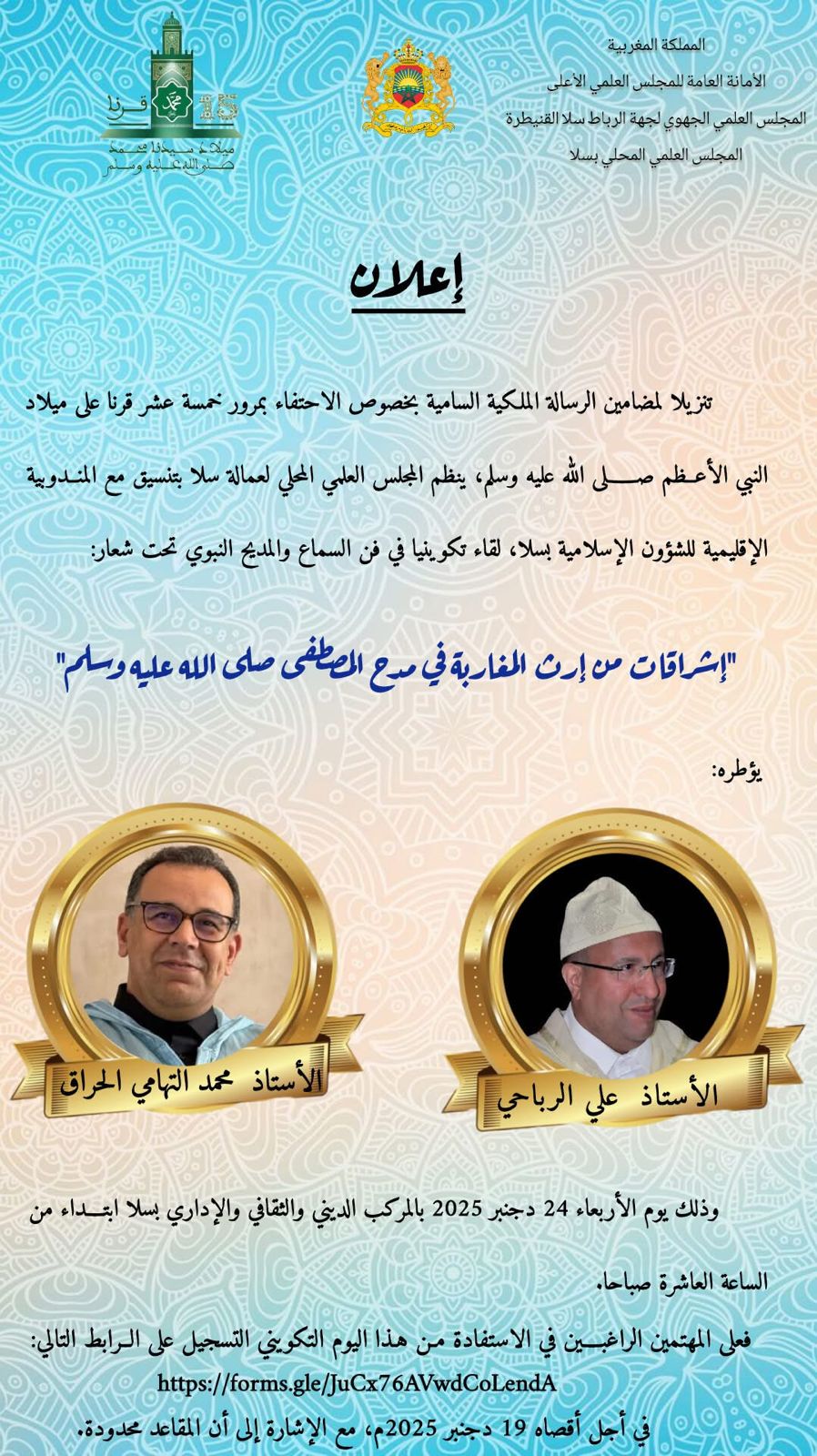 في إطار أنشطته العلمية والثقافية ينظم المجلس العلمي المحلي لإقليم مديونة دورة تكوينية في موضوع "علوم التربية وديداكتيك التربية الإسلامية" لفائدة المقبلين على مباراة التعليم وأساتذة التعليم الخصوصي وذلك ابتداء من يوم 18 غشت إلى متم شهر شتنبر 2025