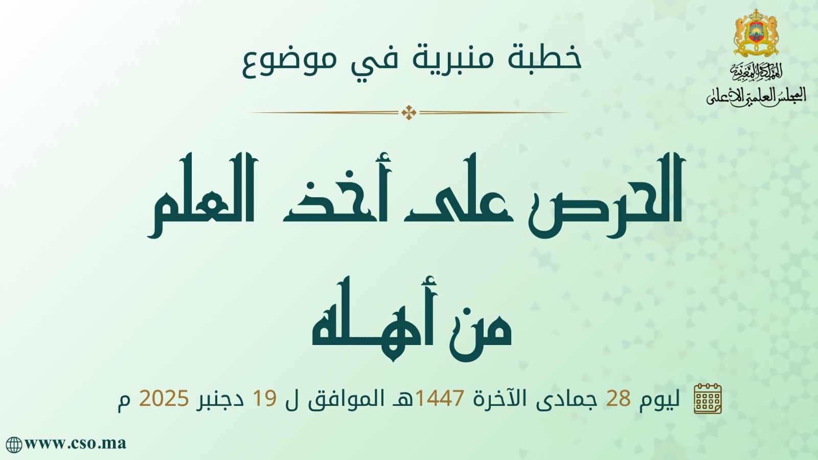 خطبة الجمعة ليوم 19 ربيع الأول 1447هـ الموافق لـ 12 شتنبر2025م