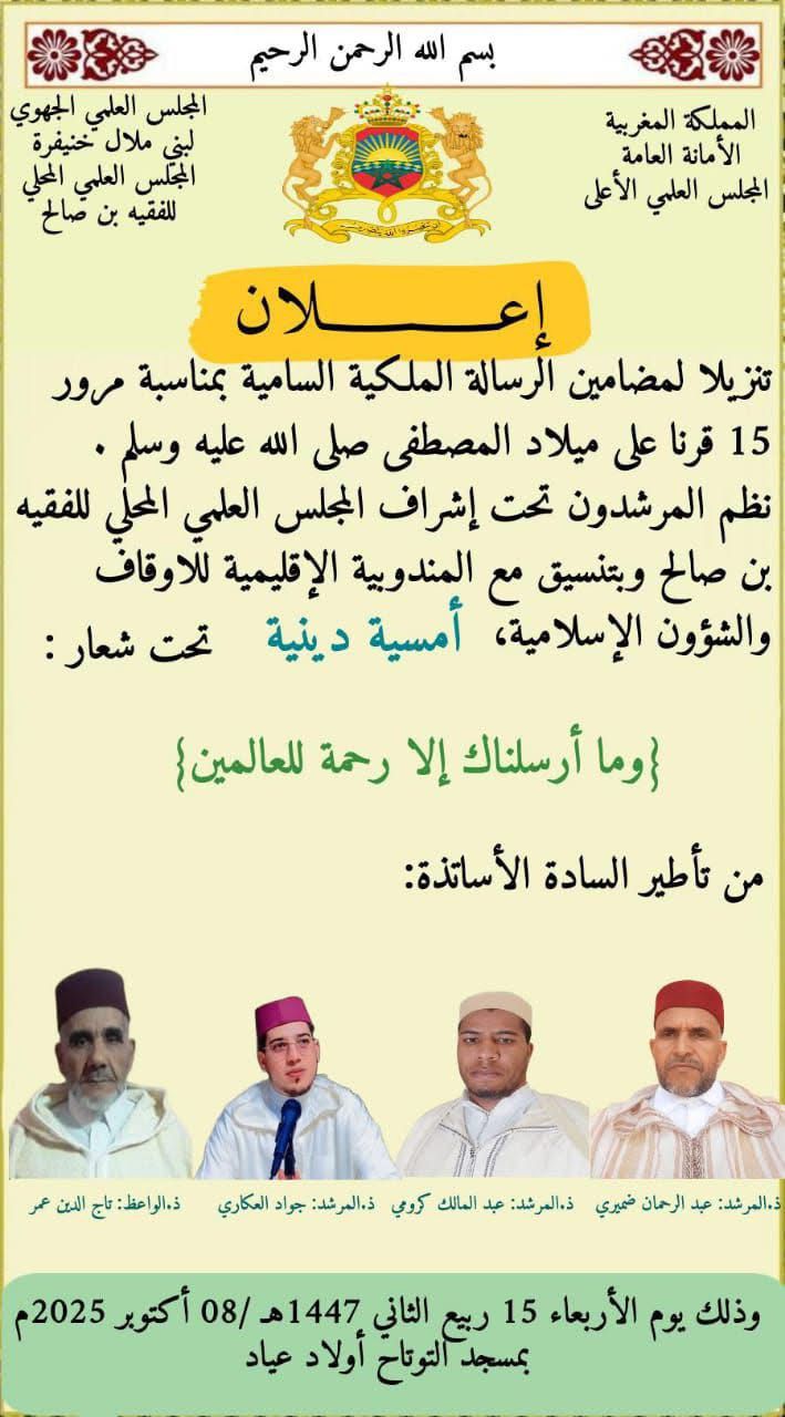 ينظم المجلس العلمي الجهوي لجهة بني ملال - خنيفرة يوما دراسيا في موضوع: "عناية إمارة المؤمنين بالإرث النبوي"