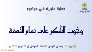 ألا فاغتنموا عباد الله، الأوقات الفاضلة في سائر الأحوال، واعمُروها بالطَّاعة وبجميل الخِصال، وأكثروا من الصَّلاة على من تتنزَّلُ بالصَّلاة عليه الرَّحمات والبركات، وتُقضى بها الرَّغائبُ والحَاجات، وينالُ بها حُسن الخواتمِ ورفيع الدَّرجات، فاللهم صلِّ وسلِّم على سيِّدنا محمد في الأولين، وصلِّ وسلِّم على سيِّدنا محمد في الآخرين، وصلِّ وسلِّم على سيِّدنا محمد في الملأ الأعلى إلى يوم الدِّين.