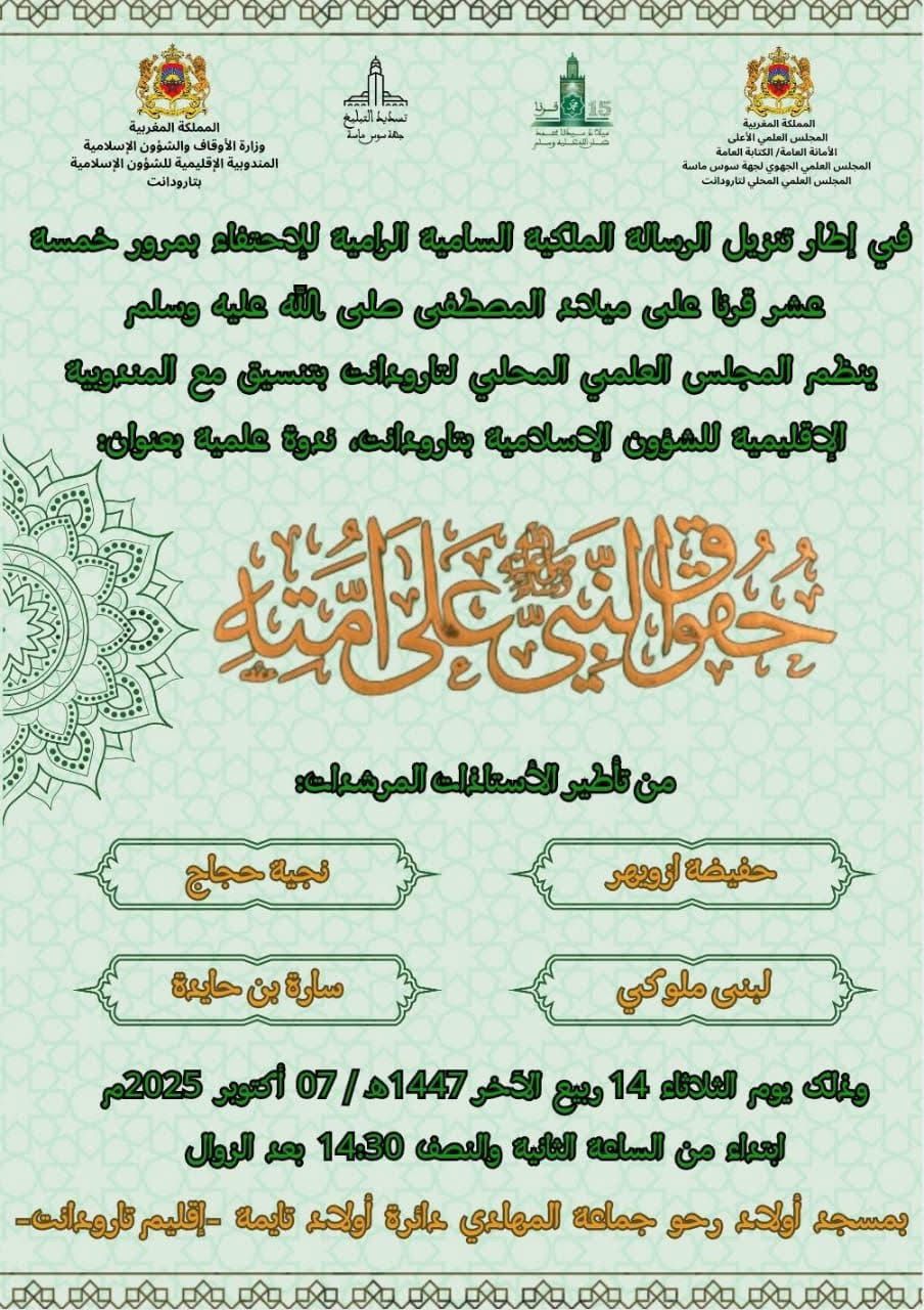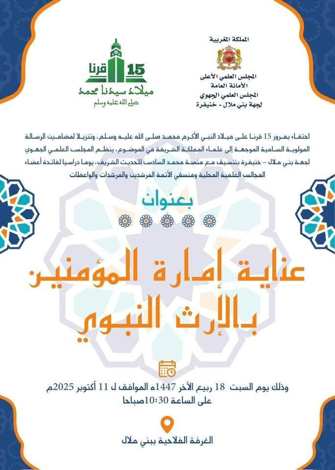 ينظم المجلس العلمي الجهوي لجهة بني ملال - خنيفرة يوما دراسيا في موضوع: "عناية إمارة المؤمنين بالإرث النبوي"